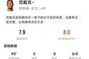 體育資訊12月21日訊 利物浦在本輪英超2-1力克熱刺,范戴克本場(chǎng)數(shù)據(jù)如下:
