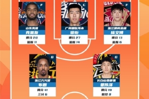 數(shù)據(jù)領(lǐng)先者方面:浙江方興渡球員布朗以單場(chǎng)41分的數(shù)據(jù)領(lǐng)銜得分榜;
