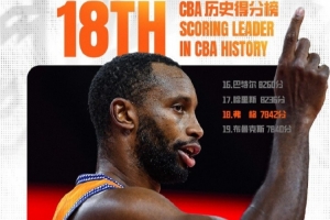 上海男籃官方曬出數(shù)據(jù):隨著弗格在第三節(jié)命中一記三分,他的CBA生涯總得分來到7842分,超越馬尚·布魯克斯升至CBA歷史得分榜第18位!