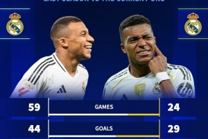 體育資訊12月27日訊 德國轉(zhuǎn)會市場統(tǒng)計了姆巴佩上賽季、本賽季的數(shù)據(jù),并做出對比。