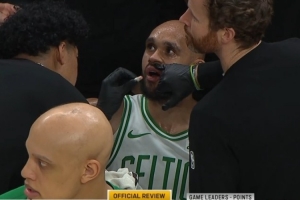 GIF-內(nèi)姆哈德上籃一肘打到懷特下巴,后者嘴巴出血