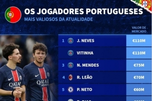 體育資訊12月28日訊 德國轉(zhuǎn)會(huì)市場列出了葡萄牙球員身價(jià)排名,若昂·內(nèi)維斯、維蒂尼亞1.1億歐居首。