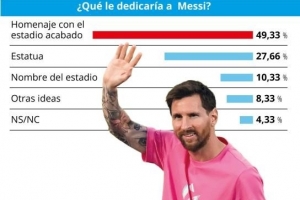 27.66%的球迷支持在球場外為其樹立雕像,使其與克魯伊夫和庫巴拉并列。僅有10.33%的人贊同直接將球場更名為“里奧·梅西球場”。