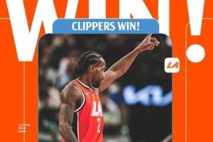 賽后快船官方發(fā)布贏球海報,萊昂納德當(dāng)選封面人物。