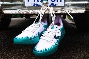 這雙Converse BB Trilliant PE設(shè)計靈感來源于他的家鄉(xiāng)俄勒岡州。俄勒岡州有“玫瑰之州”的昵稱,州花就是玫瑰,呼應(yīng)鞋墊元素,同時右腳鞋墊上還有他的個人Logo。而常綠針葉林,是俄勒岡州的代表性樹種之一,也呼應(yīng)鞋面的樹紋圖案。