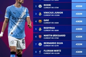 體育資訊12月29日訊 2025年即將結(jié)束,德國轉(zhuǎn)會市場盤點(diǎn)了這一年足壇身價(jià)下跌最多球員,福登下跌6000萬歐元居首,羅德里下跌5500萬歐元次之,維尼修斯下跌5000萬歐元位居第三。