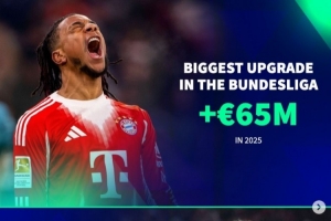 體育資訊12月31日訊 2025年即將結(jié)束,《轉(zhuǎn)會(huì)市場(chǎng)》也統(tǒng)計(jì)了五大聯(lián)賽各自的年度身價(jià)上漲最多球員,奧利塞+6500萬最多。
