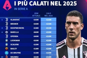 體育資訊1月1日訊 2025年已經(jīng)結束,《轉會市場》也統(tǒng)計了意甲年度身價跌幅榜,弗拉霍維奇和布雷默并列最多。