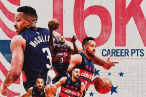 此役,奇才后衛(wèi)麥科勒姆解鎖生涯16000分里程碑,奇才官方分享海報(bào)祝賀道:“歡迎加入16000分俱樂部。”