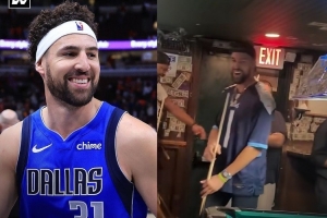 體育資訊9月13日訊 獨(dú)行俠球員克萊-湯普森被拍到在一家小酒吧里打臺球,對手失誤沒有打進(jìn)黑球,克萊順勢逆轉(zhuǎn)贏下比賽。