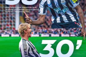 值得一提的是,紐卡上一位神鋒伊薩克在紐卡首秀的第38分鐘也很快取得進球,對手是新東家利物浦。