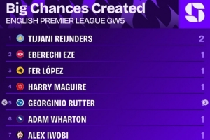 英超第5輪創(chuàng)重大機(jī)會(huì)榜: