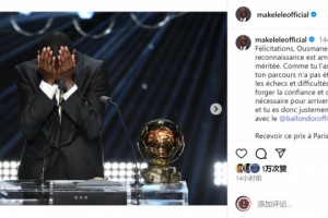 馬克萊萊曬出登貝萊領獎的照片,配文:“祝賀你,奧斯曼??。這份榮譽實至名歸。正如你昨晚所說,你的成長之路并不平坦,挫折與挑戰(zhàn)鑄就了你登頂所需的自信與決心,因此金球獎的獎杯正是你應得的回報。在巴黎,在你的隊友、朋友和家人的見證下獲得這個獎項,讓這個時刻變得更加特別。