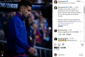 費蘭-托雷斯社媒寫道:“像這樣的比賽——對陣強大的對手——會讓我們變得更好。我們已經拼盡全力,但在最后一分鐘落敗?!?/p>