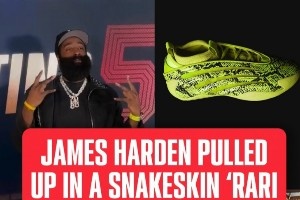 體育資訊10月5日訊 今日快船球星哈登腳踏“蛇紋”配色9代戰(zhàn)靴,搭配同款蟒紋車衣法拉利驚艷亮相《Starting 5》第二季首映禮。