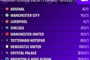 下一篇: 大熱出爐??Opta最新英超奪冠概率:阿森納51%!紅軍21%曼城16%