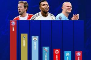 本賽季即將進入11月,而凱恩、姆巴佩、哈蘭德的進球數(shù)已經(jīng)超過15球。
