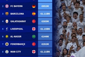 體育資訊11月2日訊 德國(guó)轉(zhuǎn)會(huì)市場(chǎng)列出了10月份俱樂(lè)部頁(yè)面瀏覽量排名,皇馬、拜仁、巴薩前三。