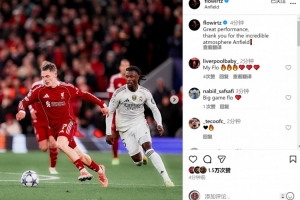 此役維爾茨為利物浦首發(fā)出戰(zhàn),送出5記關(guān)鍵傳球,賽后他在社交媒體上曬出比賽照片,并寫道:“精彩的表現(xiàn),感謝你們?cè)诎卜茽柕聽I造的非凡氛圍!”
