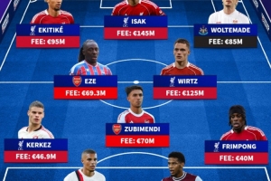 中場(chǎng):埃澤(阿森納,6930萬(wàn))、祖比門(mén)迪(阿森納,7000萬(wàn))、維爾茨(利物浦,1.25億)