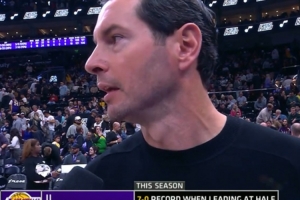 據(jù)統(tǒng)計,本賽季當(dāng)湖人上半場領(lǐng)先時7勝0負(fù),未嘗一敗,位列聯(lián)盟第三多。