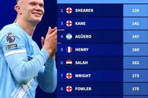 下一篇: 英超百球里程碑耗時榜:哈蘭德111場刷新紀錄,希勒、凱恩列二三