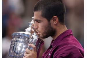 體育資訊9月8日訊 美網(wǎng)男單決賽,西班牙名將阿爾卡拉斯3-1擊敗辛納,贏得冠軍。