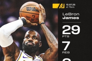 本場比賽,湖人前鋒詹姆斯上場34分鐘,17投12中得到29分7籃板6助攻。