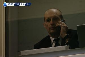 體育資訊12月09日訊 意甲第14輪米蘭客戰(zhàn)都靈,米蘭在第17分鐘0-2落后。隨后導(dǎo)播鏡頭捕捉到,因紅牌停賽的阿萊格里只能在看臺(tái)通過(guò)電話指揮,隨后米蘭成功連扳3球!