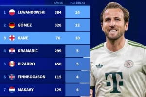 體育資訊12月9日訊 德國轉(zhuǎn)會市場盤點(diǎn)了21世紀(jì)德甲球員帽子戲法次數(shù)排名,凱恩10次已經(jīng)來到第三位。