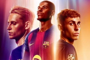 巴薩官方社媒發(fā)布了為此役制作的海報,拉什福德C位,德容、費爾明出鏡。