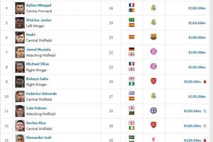 皇馬:貝林厄姆1.8億、姆巴佩1.8億、維尼修斯1.5億、巴爾韋德1.3億
