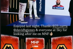 在社交媒體上,麥迪遜寫(xiě)道:很享受昨天晚上的時(shí)光。感謝卡拉格、大衛(wèi)·瓊斯以及天空體育每個(gè)照顧我的人。
