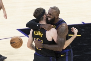 本賽季至今,里夫斯場(chǎng)均拿下28.4分5.5籃板6.7助攻1.1搶斷,詹姆斯場(chǎng)均得到16.1分4.7籃板7.6助攻。