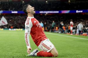 體育資訊12月11日訊 歐冠聯(lián)賽階段第6輪比賽,馬丁內(nèi)利破門,阿森納3-0領(lǐng)先布魯日。