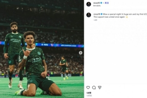 他也在賽后通過社媒曬出自己的滑跪慶祝照,并配文:“哇,真是個(gè)特別的夜晚!一場酣暢淋漓的勝利,還有我的歐冠首球!球迷們的支持再次令人感到難以置信??”
