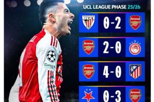 賽后,歐冠官方制作海報曬出了阿森納本賽季的歐冠戰(zhàn)績,槍手6戰(zhàn)全勝僅失1球,共打進17粒進球,還擊敗了馬競、拜仁等強隊。