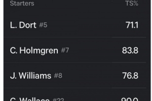 真實(shí)命中率=全場(chǎng)得分/[2×(全場(chǎng)出手次數(shù) + 0.44 × 罰球出手次數(shù))]