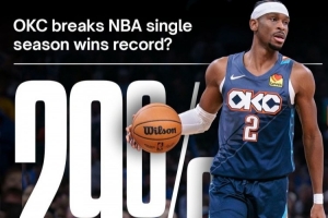 賽后預(yù)測(cè)機(jī)構(gòu)Polymarket更新了雷霆打破73勝常規(guī)賽勝場(chǎng)紀(jì)錄的概率——29%。