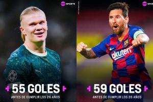 據(jù)統(tǒng)計(jì),25歲的哈蘭德在歐冠已打進(jìn)55球,26歲前歐冠進(jìn)球數(shù)僅次于梅西(59球),而哈蘭德明年7月21日才滿26歲。
