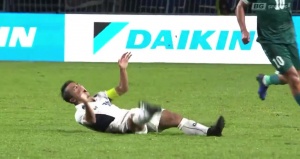 全場比賽補時階段,伊拉克1-0領先泰國。此前有“泰國梅西”之稱的泰國隊球員頌克拉辛中圈帶球突破,被身后的伊拉克十號莫哈納德-阿里一腳踢在懸空的左腿膝蓋處,頌克拉辛當場痛苦倒地并翻滾數(shù)圈!