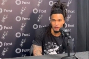 NBA杯1/4決賽,馬刺在客場(chǎng)以132-119擊敗湖人。賽后小吧采訪(fǎng)卡斯?fàn)枴?/p>