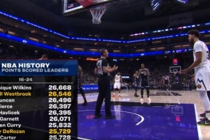 他的總得分來到25729分,超越卡特升至NBA歷史第23位。