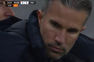 場邊費(fèi)耶諾德主帥范佩西看到自己球隊(duì)被絕殺,死死盯著場邊的平板電腦,一動不動陷入深思。