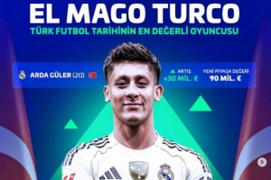 在本次更新前,德轉(zhuǎn)身價最高的土耳其球員是伊爾迪茲,身價為7500萬歐。