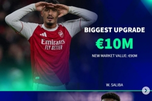 跌幅最大:薩卡,-1000萬歐,1.3億歐