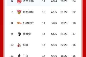 體育資訊12月15日訊 德甲第14輪基本結束,拜仁2-2美因茨9分領跑,此前第2的萊比錫本輪1-3不敵柏林聯(lián)合,第3的多特1-1憾平弗賴堡,最新積分榜如下: