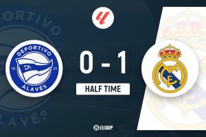 半場(chǎng)結(jié)束,皇馬暫1-0阿拉維斯。
