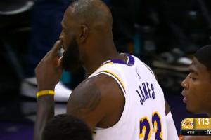 GIF-詹姆斯三分出手!裁判吹了太陽犯規(guī)!太陽挑戰(zhàn)!