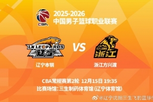 12月15日晚,遼寧男籃將在遼寧體育館迎來2025-2026賽季CBA首個(gè)主場(chǎng)比賽,對(duì)手是上賽季冠軍浙江方興渡男籃。